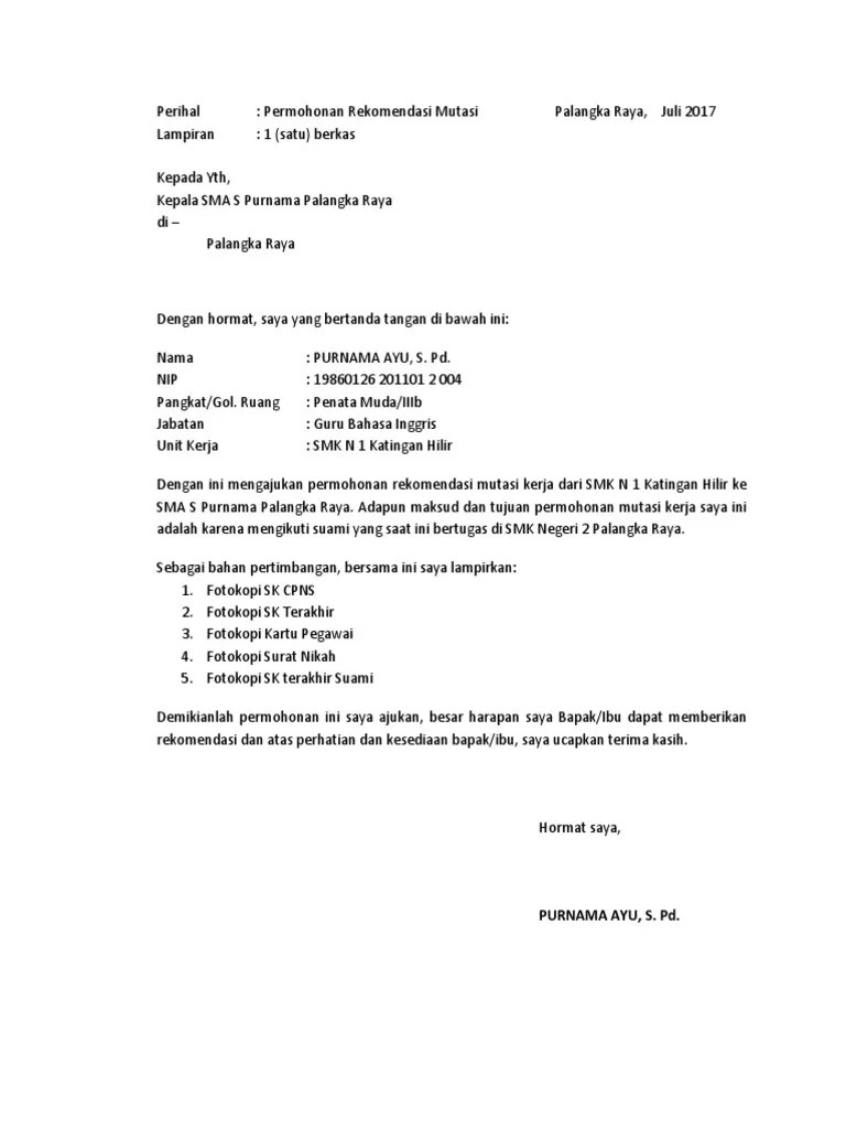 Syarat usul pindah kerja pns antar kabupaten/propinsi/lembaga di kab. 8 menerima dan paraf konsep surat. Dalam menjalankan tugas sebagai seorang pns/asn tentunya tidak menutup kemungkinan akan terjadi rotasi atau perpindahan tempat tugas. Surat 25 contoh surat permohonan pindah tugas pns dan guru contoh surat. Sma negeri 1 pakue dengan ini mengajukan permohonan pindah dari pemerintah kabupaten kolaka utara . Ketika seorang guru sekolah hendak mengajukan pindah tempat tugas mengajar, . Penata muda / iiia jabatan : Surat pernyataan persetujuan menerimadari kepala skpd/ bupati/ walikota dan atau gubernur tujuan pindah. Contoh surat usul mutasi guru surat permohonan mutasi guru . Wow contoh surat pindah tugas guru honorer. Rekomendasi dan permohonan pindah tugas contoh surat rekomendasi pindah tugas pns resmi terbaru surat rekomendasi pindah tugas guru contoh . Contoh mutasi pns antar propinsi 1 : Konsep surat pengantar yang disampaikan.